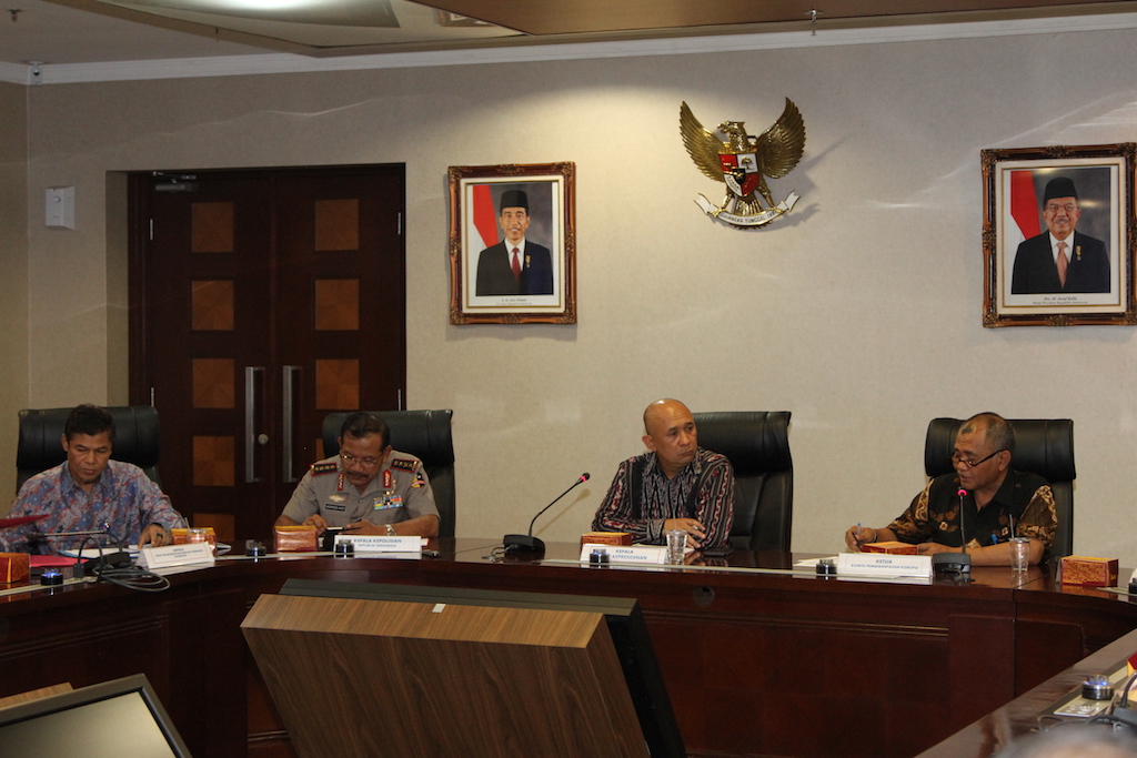 Kepala Staf Presiden Teten Masduki bersama Kapolri Jenderal Badrodin Haiti, Ketua KPK Agus Rahardjo, Dirjen Pajak Ken Dwijugiasteadi, Kepala PPATK Muhammad Yusuf dan perwakilan Kementerian Keuangan dan Bank Indonesia rapat bersama di Kantor Staf Presiden membahas skandal perusahaan offshore yang terungkap lewat Panama Papers.
