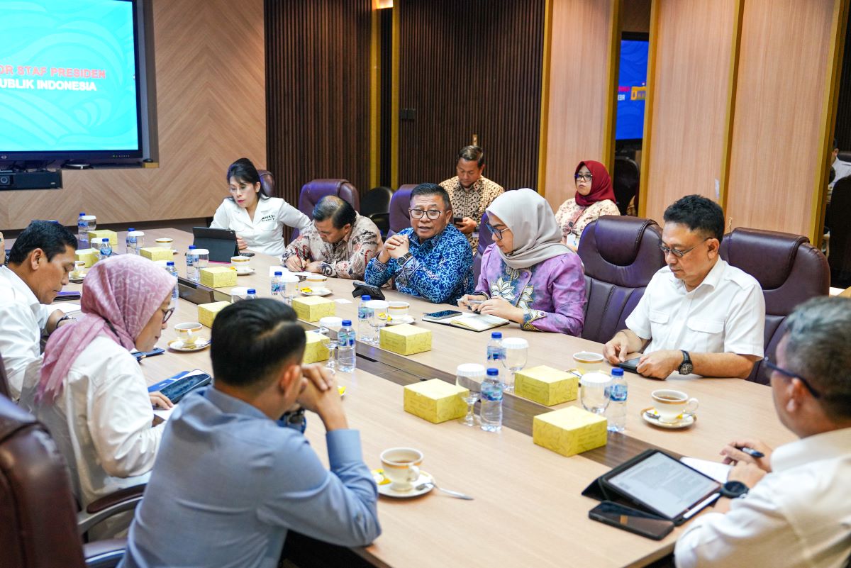 Plt Deputi I Kepala Staf Kepresidenan, Letjen TNI (Purn) Dr. Hilman Hadi, menerima audiensi dari Asosiasi Pemerintah Kota Seluruh Indonesia (APEKSI) Komwil V Wilayah Kalimantan di Bina Graha, Rabu (9/10). Pertemuan membahas isu strategis yang dihadapi pemerintah kota di Kalimantan, mulai dari keuangan pusat-daerah hingga pelaksanaan program prioritas nasional. KSP berkomitmen perkuat sinergi antara pemerintah pusat dan daerah, serta siap memfasilitasi pembentukan working group untuk menindaklanjuti isu-isu strategis dan merumuskan rekomendasi bersama bagi kementerian/lembaga terkait.
