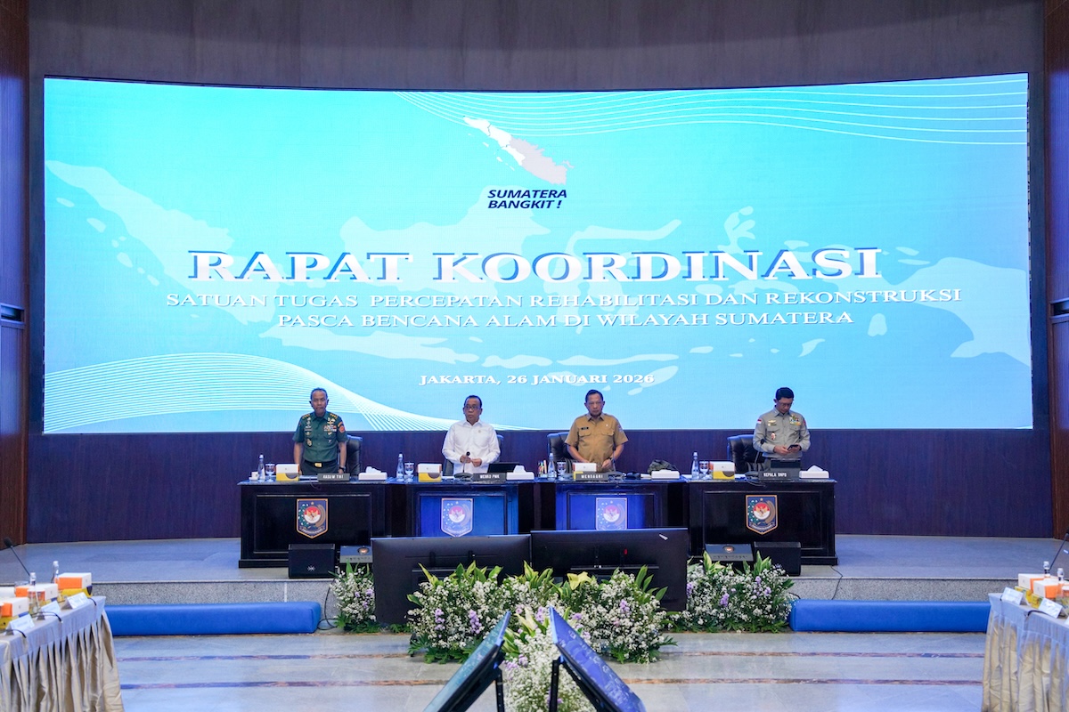 Kepala Staf Kepresidenan Muhammad Qodari menghadiri rapat koordinasi Satuan Tugas Percepatan Rehabilitasi dan Rekonstruksi Pascabencana Aceh, Sumatra Utara, Sumatra Barat, di Kementerian Dalam Negeri, Senin, 26 Januari 2026. Kehadiran KSP menjadi bagian dari pengawalan pemerintah pusat agar penanganan pascabencana berjalan terpadu dan tepat sasaran. Rapat tersebut membahas langkah-langkah prioritas pemulihan, mulai dari normalisasi sungai, perbaikan akses jalan, pendataan rumah rusak, hingga pemulihan aktivitas ekonomi masyarakat. Pemerintah berkomitmen mempercepat penyaluran bantuan melalui validasi data kerusakan serta dukungan fiskal guna memastikan proses rehabilitasi dan rekonstruksi pascabencana berjalan cepat, terukur, dan memberi dampak nyata bagi masyarakat.