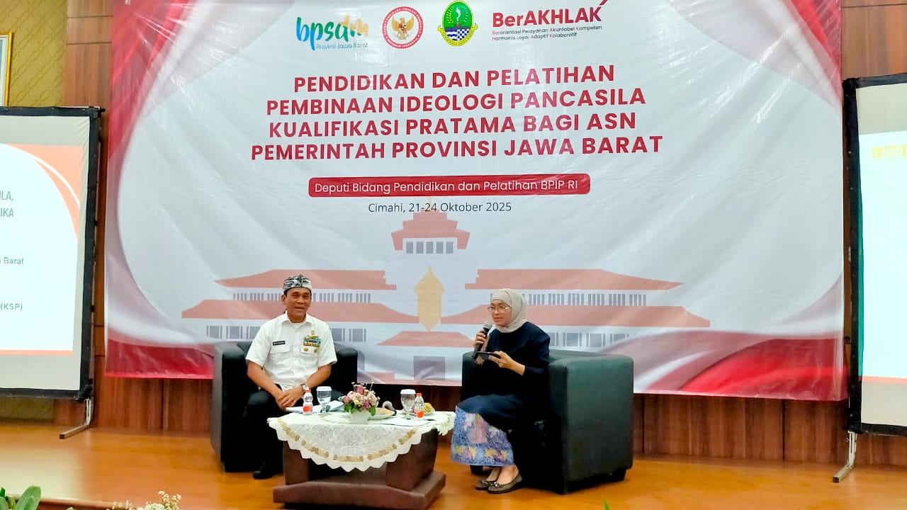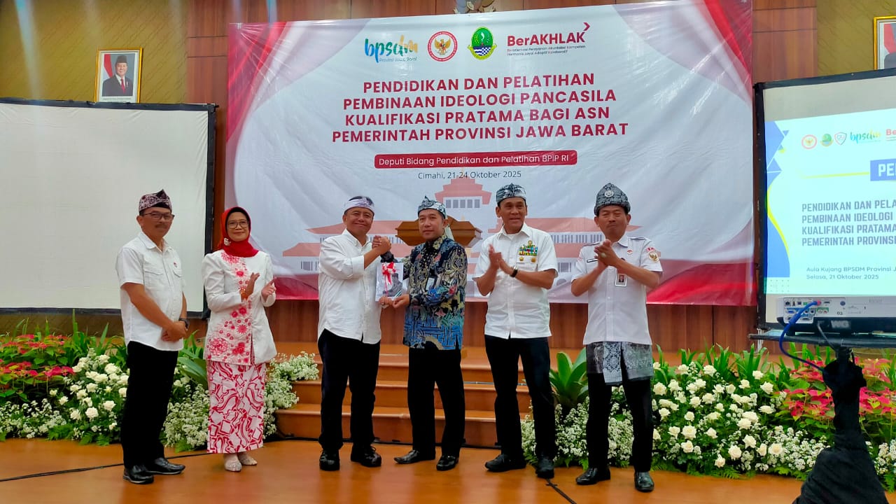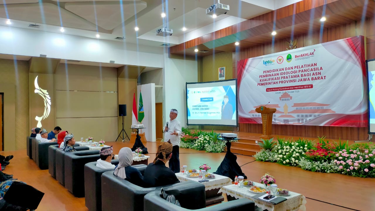 Tenaga Ahli Utama Kedeputian I Kantor Staf Presiden (KSP), Mayjen TNI (Purn) H. Dedi Sambowo, menjadi narasumber dalam kegiatan Diklat Pembinaan Ideologi Pancasila (PIP) bagi ASN Provinsi Jawa Barat yang diselenggarakan oleh BPIP bersama BPSDM Jawa Barat. Melalui pemaparannya, KSP menegaskan komitmennya dalam mengawal Asta Cita Presiden, khususnya cita pertama tentang pengokohan ideologi Pancasila, serta mendorong ASN untuk mengamalkan nilai-nilai Pancasila dalam setiap kebijakan dan pelayanan publik.