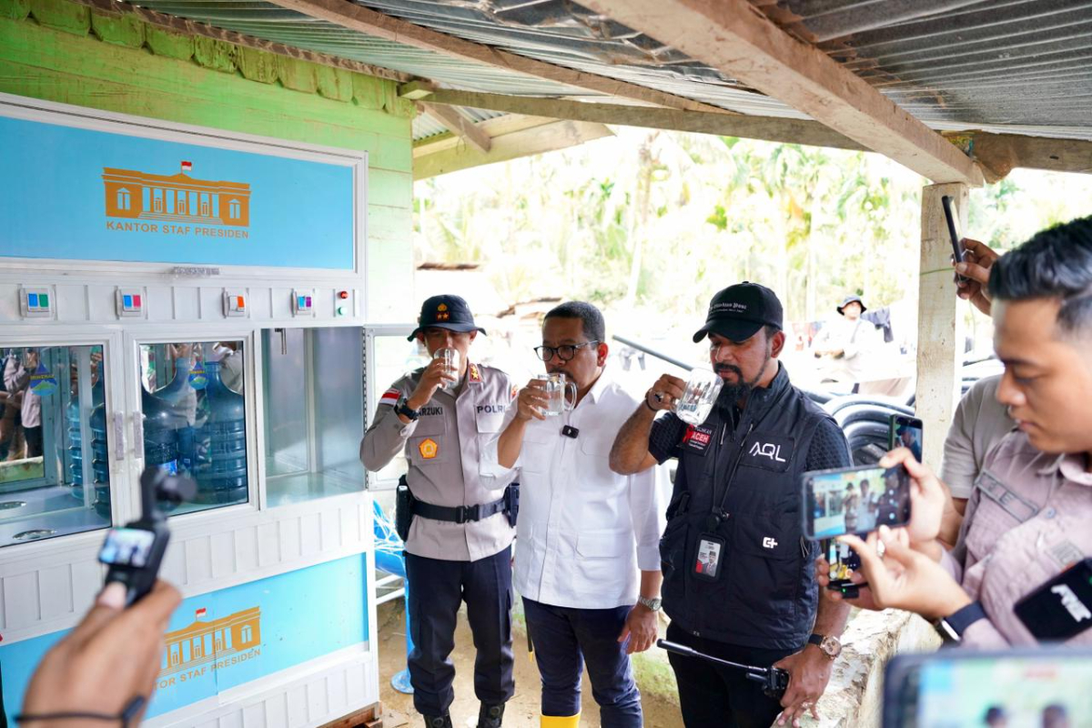 Water purifier tersebut mampu memproduksi hingga 3.000 liter air siap minum per hari dari sumber air yang tersedia di lokasi. Alat ini menjadi solusi cepat di wilayah yang selama ini harus mendapatkan air minum dari luar desa dengan jarak hingga 12 kilometer.