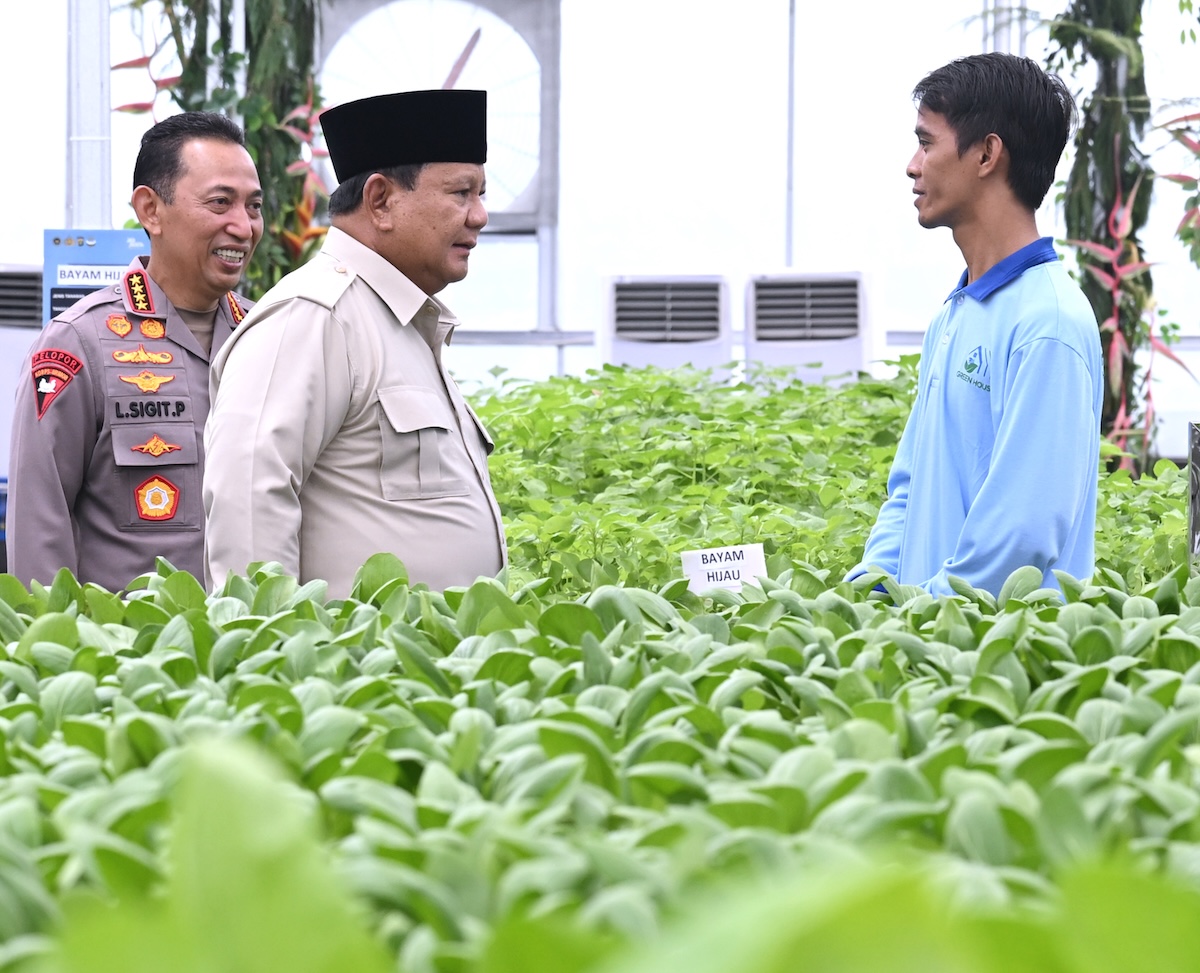 Presiden Prabowo juga meninjau green house yang menjadi bagian dari rantai pasok bahan baku SPPG Polri. Green house tersebut difungsikan untuk mendukung ketersediaan bahan pangan segar dan berkualitas, sekaligus memperkuat sistem ketahanan pangan secara berkelanjutan. Konsep ini menekankan pentingnya integrasi antara produksi bahan baku dan pelayanan pemenuhan gizi dalam satu ekosistem.
