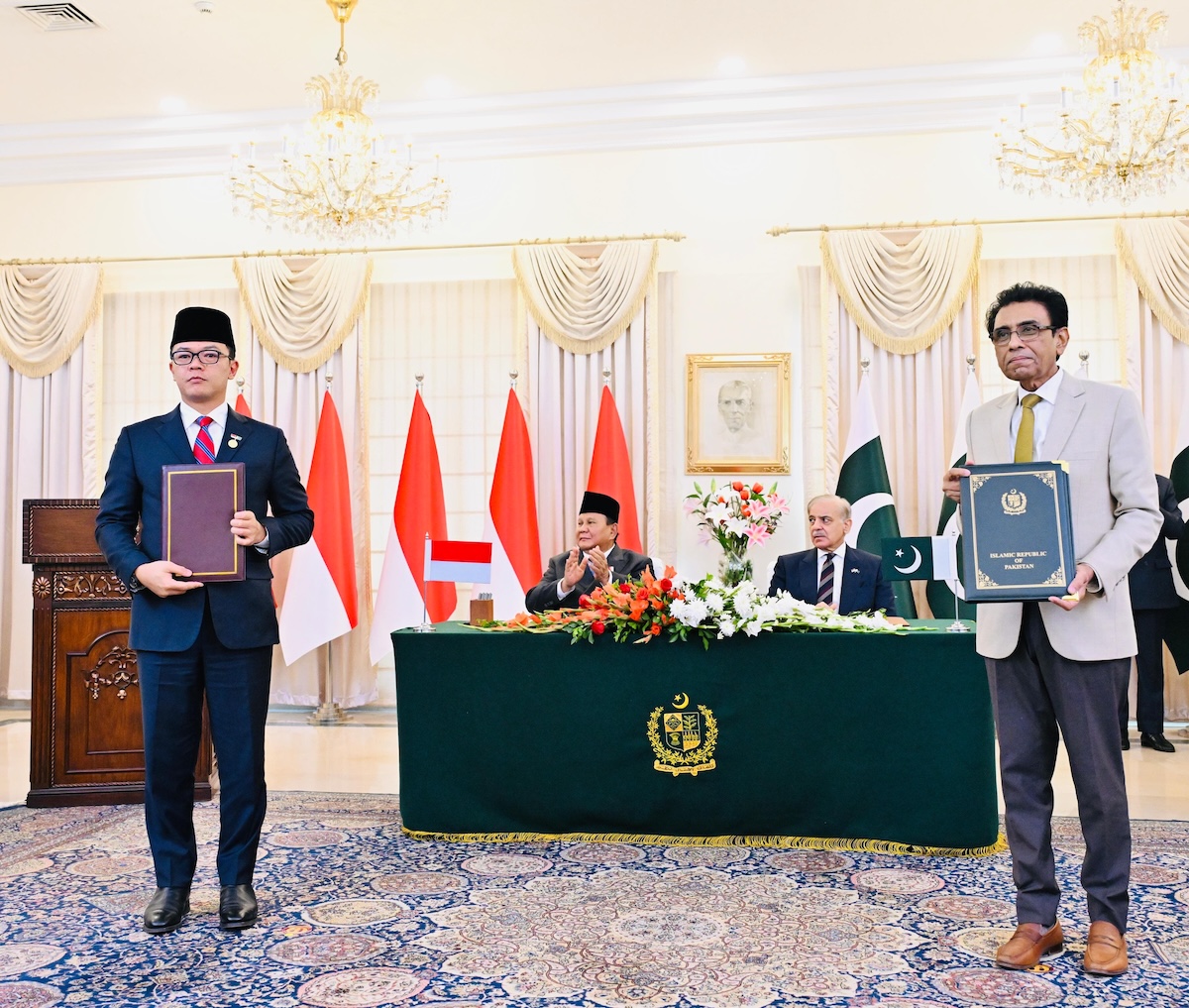 Indonesia dan Pakistan sepakat untuk memperkuat kemitraan melalui pertukaran nota kesepahaman atau memorandum of understanding (MoU) dan perjanjian kerja sama di sejumlah sektor. Pertukaran dokumen tersebut berlangsung di kediaman resmi Perdana Menteri (PM) Pakistan di Islamabad pada Selasa, 9 Desember 2025 dan disaksikan secara langsung oleh Presiden Republik Indonesia, Prabowo Subianto dan PM Pakistan Shehbaz Sharif.