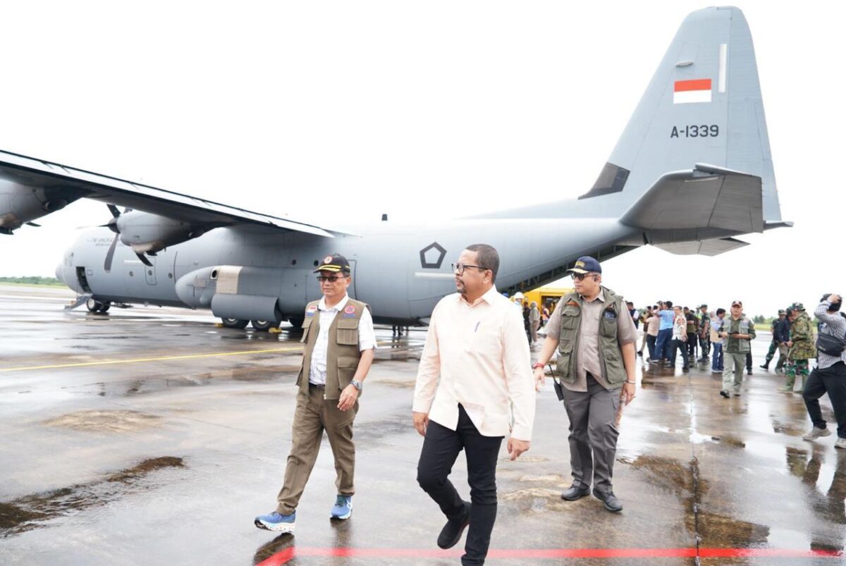 Padang — Pemerintah bergerak cepat menangani bencana di Sumatera Barat. Bantuan Presiden untuk penanganan darurat tiba di Bandara Udara Internasional Minangkabau, Jumat (28/11), menggunakan pesawat Hercules TNI AU. Pesawat ini merupakan bagian dari empat armada yang diberangkatkan dari Lanud Halim Perdanakusuma—dua ke Aceh, satu ke Sumbar, dan satu ke Sumut. Kedatangan bantuan disaksikan langsung oleh Kepala Staf Kepresidenan Muhammad Qodari, Sekretaris Utama BNPB Dr. Rustian, dan Wakil Gubernur Sumbar Vasko Ruseimy.