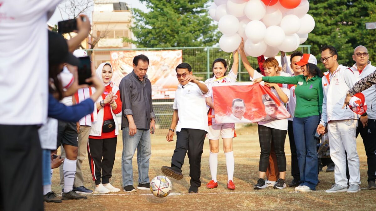 Jakarta – Kepala Staf Kepresidenan, Jenderal TNI (Purn) Dr. Moeldoko, membuka turnamen sepak bola gala kampung “Piala Panglima 2023”, di lapangan PSPT Tebet, Jakarta Selatan, Senin (9/10). Pembukaan ditandai dengan tendangan Kick off di tengah lapangan.