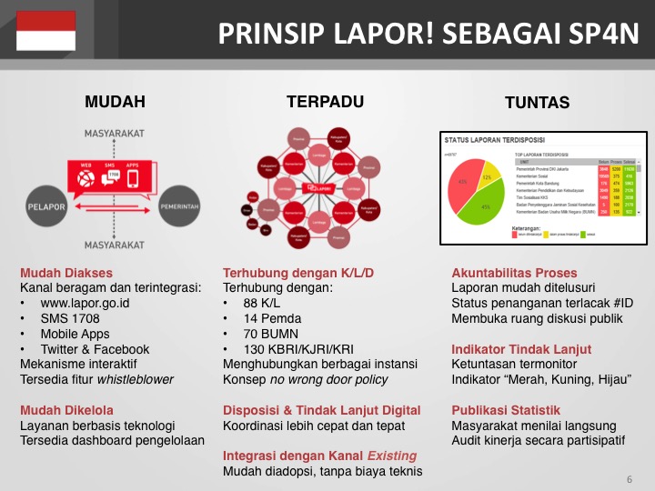 “Laporan Masyarakat yang tidak ditanggapi akan diteruskan kepada Ombudsman RI,” tambah Ketua Ombudsman RI Amzulian Rifai. “Sehingga diharapkan dapat mendorong efektivitas sarana pengaduan ini,” ucapnya lagi.