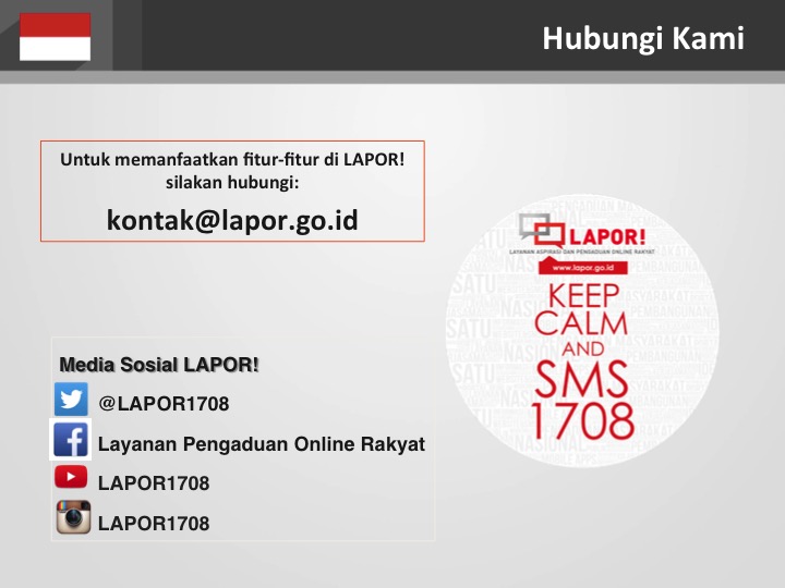 Kinerja pengelolaan pengaduan akan dilaporkan secara berkala kepada Presiden Jokowi. Deputi 1 Kantor Staf Presiden Darmawan Prasodjo mengajak masyarakat menyampaikan aspirasi dan pengaduan melalui situs www.lapor.go.id dan SMS ke nomor 1708.