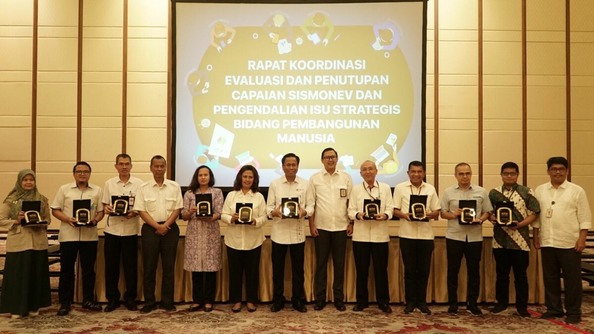 Sebagai informasi, rakor evaluasi sekaligus penutup Sismonev ini dihadiri oleh mitra-mitra kerja KSP bidang Pembangunan Manusia, antara lain Deputi PMK Setkab, Sekjen Kemenag, Deputi PHA KemenPPPA, Asdep Gizi Kemenko PMK, dan lain-lain, baik hadir secara langsung maupun melalui aplikasi daring. Rapat diakhiri dengan pemberian plakat penghargaan dari KSP kepada para 10 mitra kerja periode 2020-2024.