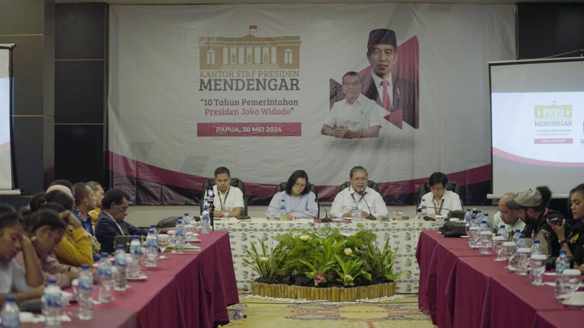 Kali ini, program KSP Mendengar bertemakan “10 Tahun Pemerintahan Presiden Joko Widodo” yang dihadiri oleh perwakilan dari berbagai komunitas masyarakat adat di Papua, akademisi, alumni dan orangtua penerima beasiswa ADiK dan ADEM, serta komunitas anak muda kreatif Papua. Melalui kegiatan ini, KSP ingin mendengar dampak-dampak yang dirasakan masyarakat Papua terhadap program pemerintah di masa kepemimpinan Presiden Joko Widodo. “Kita sedang gerak ke arah globalisasi dengan berbagai tantangan, dimana itu semua memang suatu realitas pembangunan untuk mensejahterakan hidup kita,” pungkas Theo.