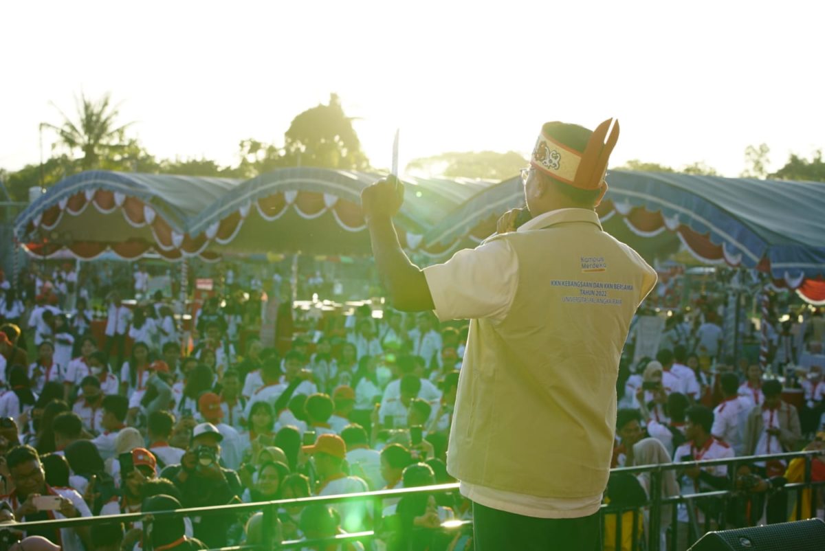 Palangka Raya – Kepala Staf Kepresidenan Dr. Moeldoko menghadiri penutupan KKN Kebangsaan ke-X dan KKN Bersama BKS-PTN Barat Tahun 2022, di Stadion Mini Universitas Palangka Raya (UPR) Kalimantan Tengah, Sabtu (20/8). Kedatangan Moeldoko ini, untuk memberikan pembekalan kepada mahasiswa peserta KKN.
