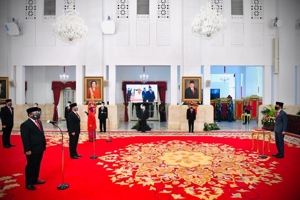 JAKARTA-Presiden Joko Widodo resmi melantik enam figur calon menteri yang pada Selasa petang kemarin diperkenalkan sebagai menteri Kabinet Indonesia Maju untuk sisa masa jabatan periode tahun 2019-2024. Pelantikan digelar di Istana Negara, Jakarta, pada Rabu, 23 Desember 2020 dengan tetap menerapkan protokol kesehatan.